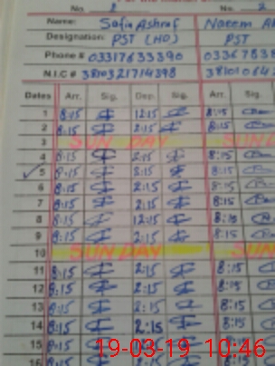 | CNIC | Full Name | Designation | R/C | Absence During Last Calender Month |