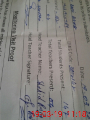 | Certified that this School was Inspected by the Undersigned MEA/DMO Today and the Information Stated Above is as Per Record. | |||||
