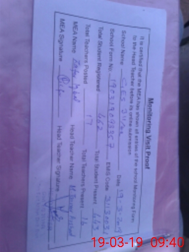 | Certified that this School was Inspected by the Undersigned MEA/DMO Today and the Information Stated Above is as Per Record. | |||||