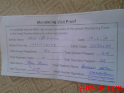 | Certified that this School was Inspected by the Undersigned MEA/DMO Today and the Information Stated Above is as Per Record. | |||||