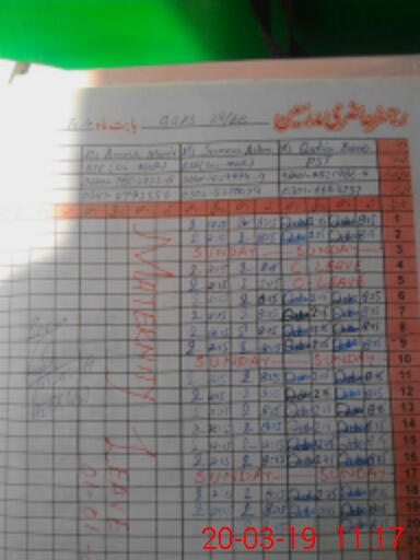 | CNIC | Full Name | Designation | R/C | Absence During Last Calender Month |