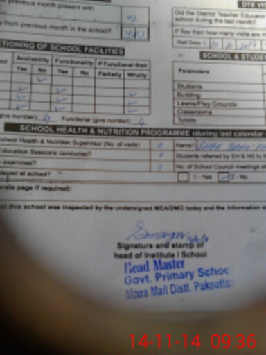 | Certified that this School was Inspected by the Undersigned MEA/DMO Today and the Information Stated Above is as Per Record. | |||||
