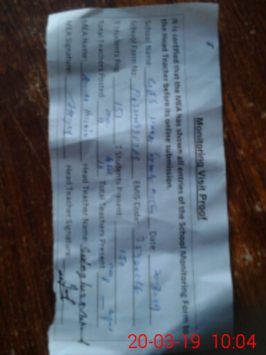 | Attendance Register | Head Teacher | MEA with School | Visit Proof |