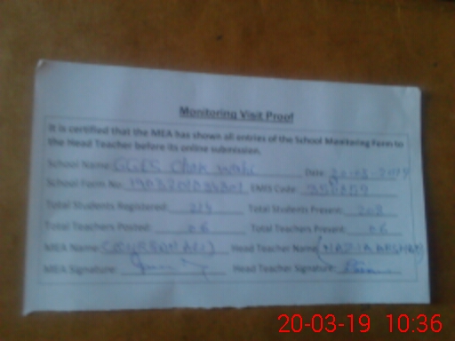 | Attendance Register | Head Teacher | MEA with School | Visit Proof |