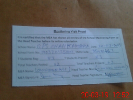 | Attendance Register | Head Teacher | MEA with School | Visit Proof |