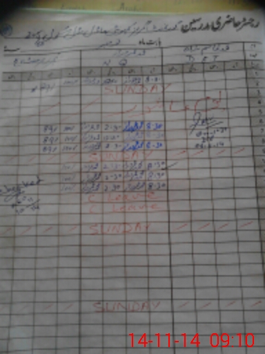 | CNIC | Full Name | Designation | R/C | Absence During Last Calender Month |
