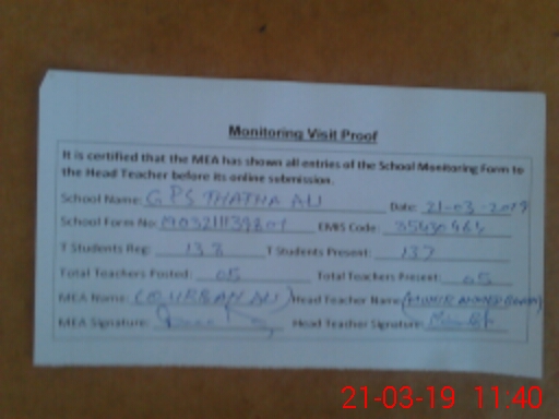 | EMIS Code: 35430464 | Name of School: GPS THATHA ALI | |||