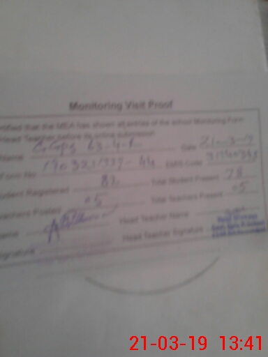 | Certified that this School was Inspected by the Undersigned MEA/DMO Today and the Information Stated Above is as Per Record. | |||||