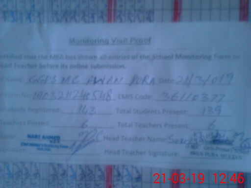 | EMIS Code: 36110377 | Name of School: GGPS MC AWAN PURA | |||