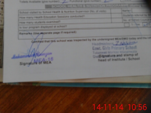 | Certified that this School was Inspected by the Undersigned MEA/DMO Today and the Information Stated Above is as Per Record. | |||||