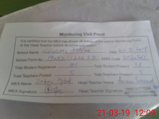 | Certified that this School was Inspected by the Undersigned MEA/DMO Today and the Information Stated Above is as Per Record. | |||||