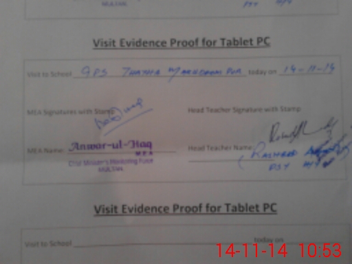 | Attendance Register | Head Teacher | MEA with School | Visit Proof |