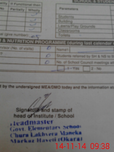 | Certified that this School was Inspected by the Undersigned MEA/DMO Today and the Information Stated Above is as Per Record. | |||||
