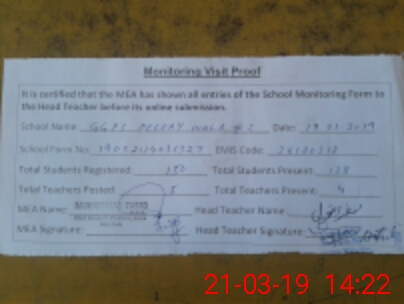 | Certified that this School was Inspected by the Undersigned MEA/DMO Today and the Information Stated Above is as Per Record. | |||||