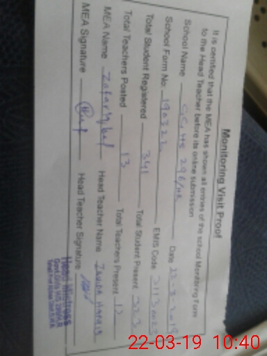 | Certified that this School was Inspected by the Undersigned MEA/DMO Today and the Information Stated Above is as Per Record. | |||||