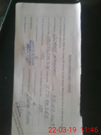 | Total no. of Classrooms: 12 No. of Classrooms Used for Teaching: 9 No. of Classrooms Storing Old Furniture, FTBs, etc: 0Comments if Any: NSB FUND INSTALMENT OF OCT 2018 AMOUNT AND DATE NOT ACCORDING TO bank statement |