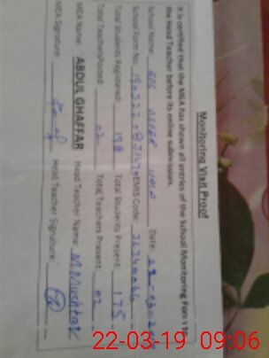| Certified that this School was Inspected by the Undersigned MEA/DMO Today and the Information Stated Above is as Per Record. | |||||