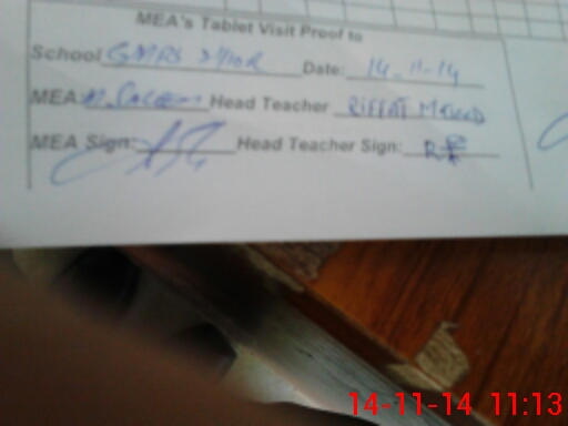 | Attendance Register | Head Teacher | MEA with School | Visit Proof |