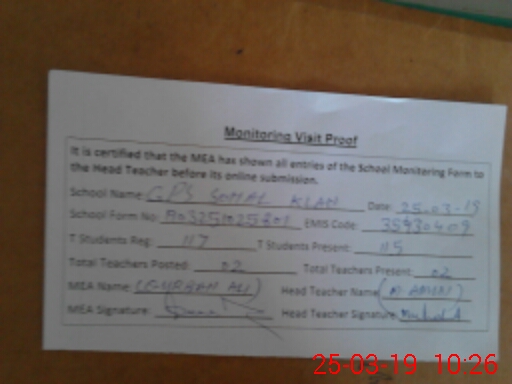 | EMIS Code: 35430409 | Name of School: GPS SOHAIL KALAN | |||