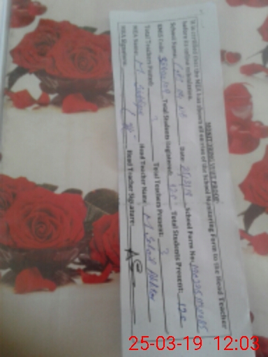 | School Visited by School Health & Nutrition Supervisor (No. of Visits) | 1 | Name1: | IBRAR HASSAN | Name2: | |