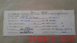 | Monitoring Date: 25-03-2019 | Start Time: 25-03-2019 12:40 PM | End Time: 25-03-2019 01:19 PM | Name of MEA: GH**** MU**** | |