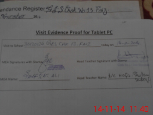 | Attendance Register | Head Teacher | MEA with School | Visit Proof |