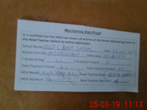 | Certified that this School was Inspected by the Undersigned MEA/DMO Today and the Information Stated Above is as Per Record. | |||||