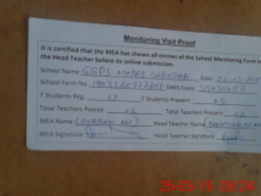 | Certified that this School was Inspected by the Undersigned MEA/DMO Today and the Information Stated Above is as Per Record. | |||||