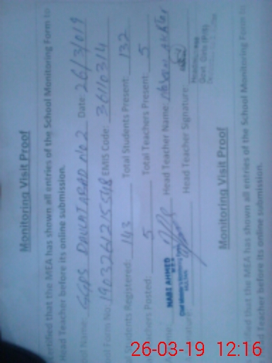 | Certified that this School was Inspected by the Undersigned MEA/DMO Today and the Information Stated Above is as Per Record. | |||||