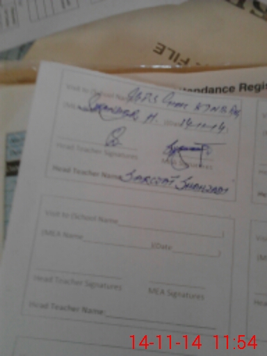 | Attendance Register | Head Teacher | MEA with School | Visit Proof |
