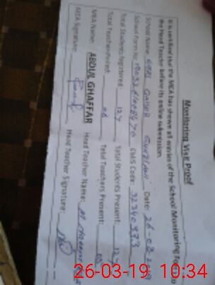 | Attendance Register | Head Teacher | MEA with School | Visit Proof |