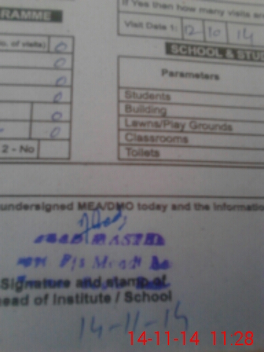 | Certified that this School was Inspected by the Undersigned MEA/DMO Today and the Information Stated Above is as Per Record. | |||||