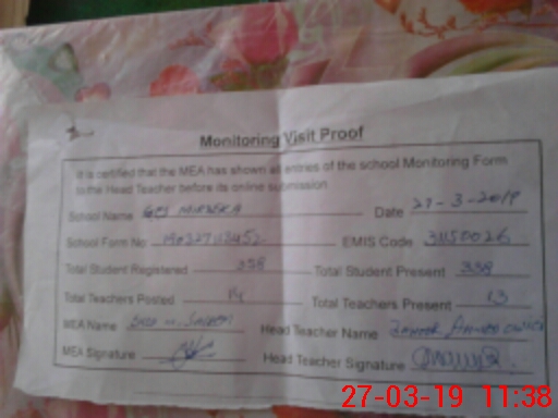 | EMIS Code: 31150026 | Name of School: GHS MIRZEKA | |||