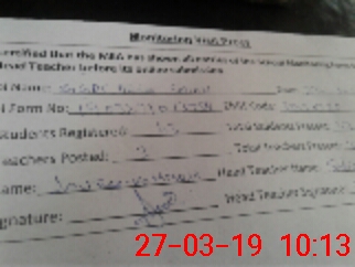 | Name: SO**** AS**** Designation: (School Headmaster's/Headmistress's) PST Sci-math Phone/Cell Number: 03**** |