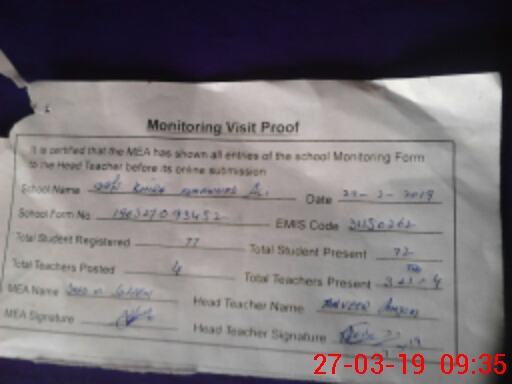 | Attendance Register | Head Teacher | MEA with School | Visit Proof |