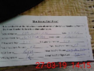| Attendance Register | Head Teacher | MEA with School | Visit Proof |