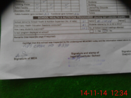 | Attendance Register | Head Teacher | MEA with School | Visit Proof |