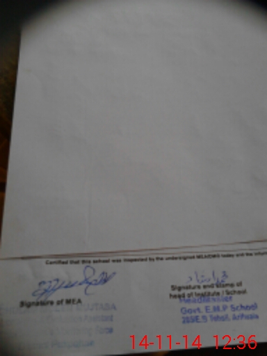 | Certified that this School was Inspected by the Undersigned MEA/DMO Today and the Information Stated Above is as Per Record. | |||||