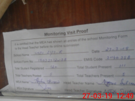 | Certified that this School was Inspected by the Undersigned MEA/DMO Today and the Information Stated Above is as Per Record. | |||||