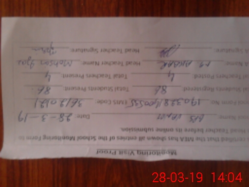 | Certified that this School was Inspected by the Undersigned MEA/DMO Today and the Information Stated Above is as Per Record. | |||||