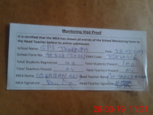 | EMIS Code: 35430416 | Name of School: GPS JHATWAN | |||