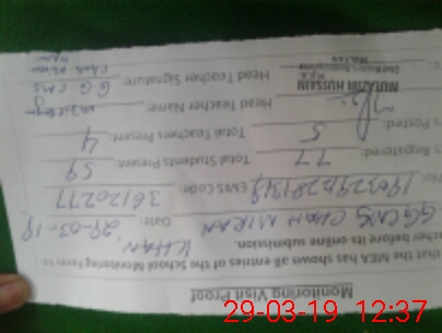 | Certified that this School was Inspected by the Undersigned MEA/DMO Today and the Information Stated Above is as Per Record. | |||||
