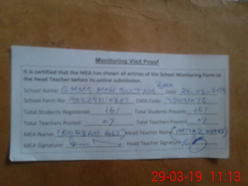 | EMIS Code: 35431076 | Name of School: GMMS SULTAN PURA | |||