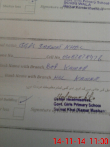 | EMIS Code: 38310325 | Name of School: GMPS SARMAT KHEL | |||