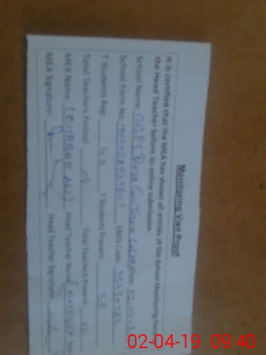 | Certified that this School was Inspected by the Undersigned MEA/DMO Today and the Information Stated Above is as Per Record. | |||||