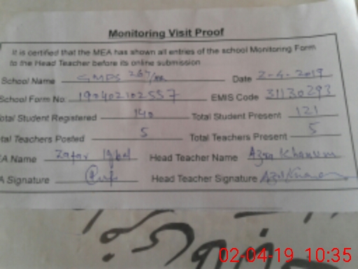 | EMIS Code: 31130293 | Name of School: GMPS CHAK NO 267 HR | |||