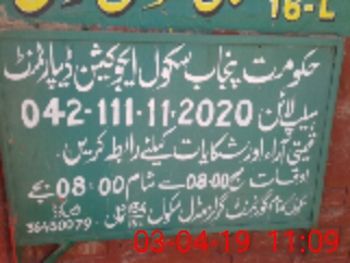 | EMIS Code: 36430079 | Name of School: GGHS 134/16-L, MIAN CHANNU | |||