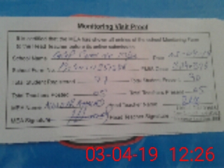| Monitoring Date: 03-04-2019 | Start Time: 03-04-2019 11:35 AM | End Time: 03-04-2019 12:26 PM | Name of MEA: NA**** AH**** BN**** | |