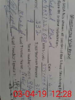 | Monitoring Date: 03-04-2019 | Start Time: 03-04-2019 11:28 AM | End Time: 03-04-2019 12:30 PM | Name of MEA: zI**** Kh**** | |