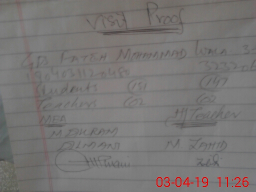 | EMIS Code: 32320657 | Name of School: GPS FATEH MUHAMMAD WALA | |||